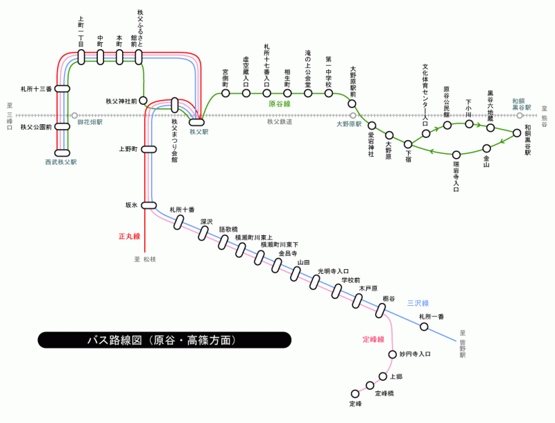 秩父市内バス路線図(原谷・高篠方面)