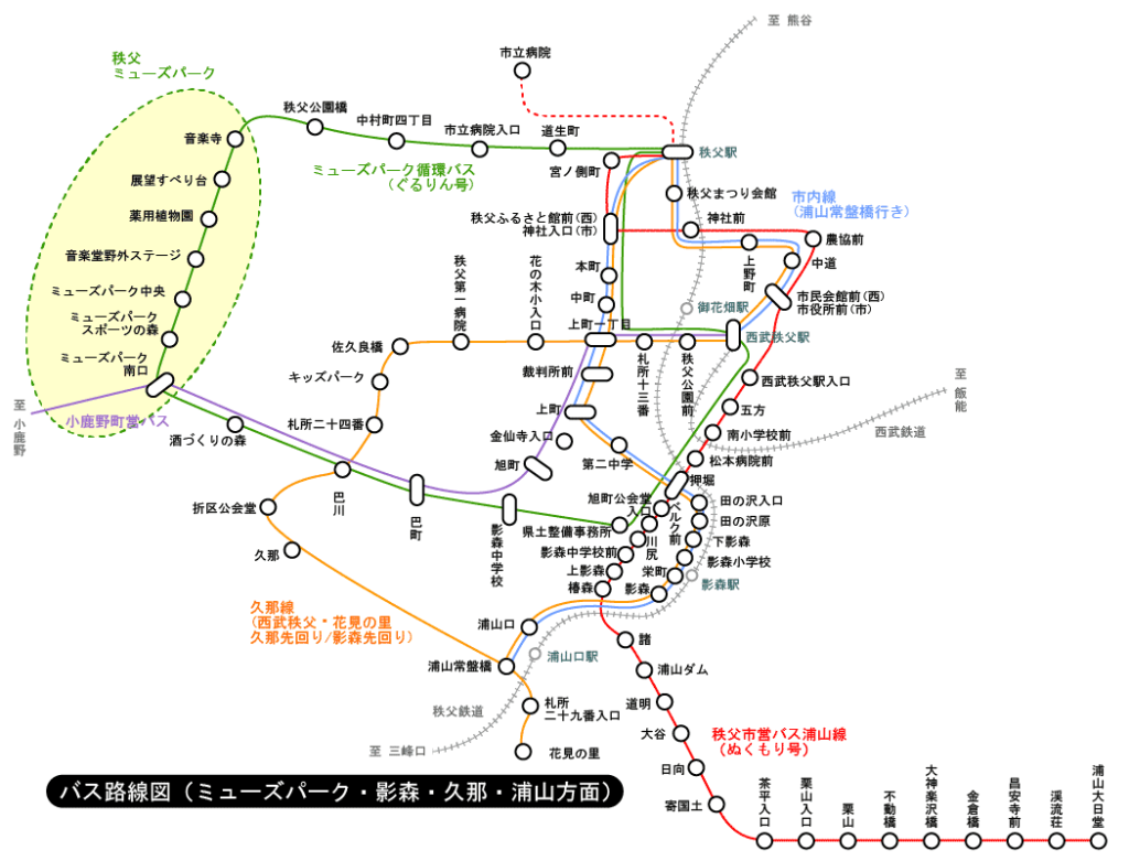秩父市内バス路線図(ミューズパーク・影森・久那・浦山方面)