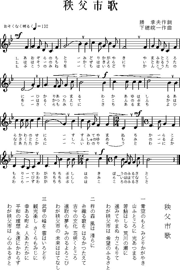 秩父市歌 歌詞(93KB)