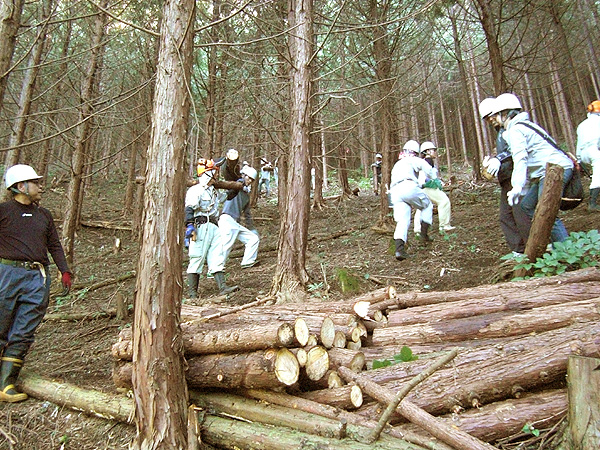 会員は市内在住の方から県外にお住まいの方まで、職業や山仕事の経験などさまざまですが、月に2回程度のペースで間伐等の作業を行っています。