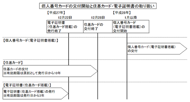 個人番号カードの交付開始と住基カード・電子証明書の取り扱い