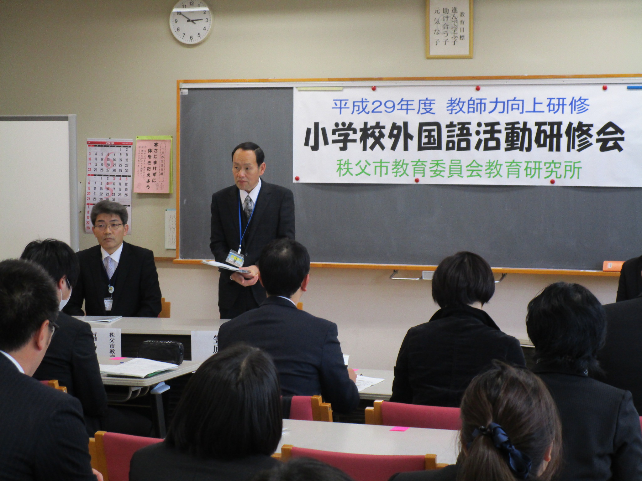 新学習指導要領の移行期間を来年度に控え、これまでの外国語活動の成果と今後の新しい外国語教育の考え方を合わせ、小学校における外国語活動の指導方法の工夫改善に向けて授業研究会を実施する。また、中学校英語科教員の参加を通して、中学校における授業改善を図るとともに、小・中のスムーズな連携を図るため研修を深める。