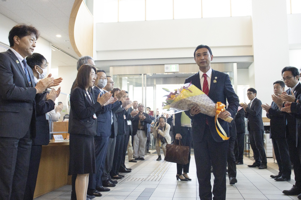 本日は、私が第四代秩父市長に就任するにあたり、多くの方々からの力強いご支援と温かい応援を賜り、心より感謝申し上げます。初登庁セレモニーでは、多くの皆さまからの温かい歓迎と労いの言葉をいただき、改めてこの職務の重責を実感しました。皆さまの期待に応えるべく、新しい時代を皆さんと共に切り開いていく所存です。