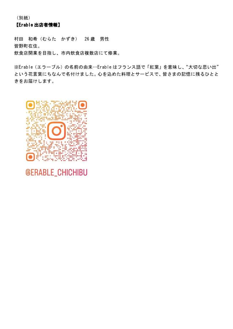 新たにオープンするチャレンジ飲食店「Erable(エラーブル)」についてお知らせします。