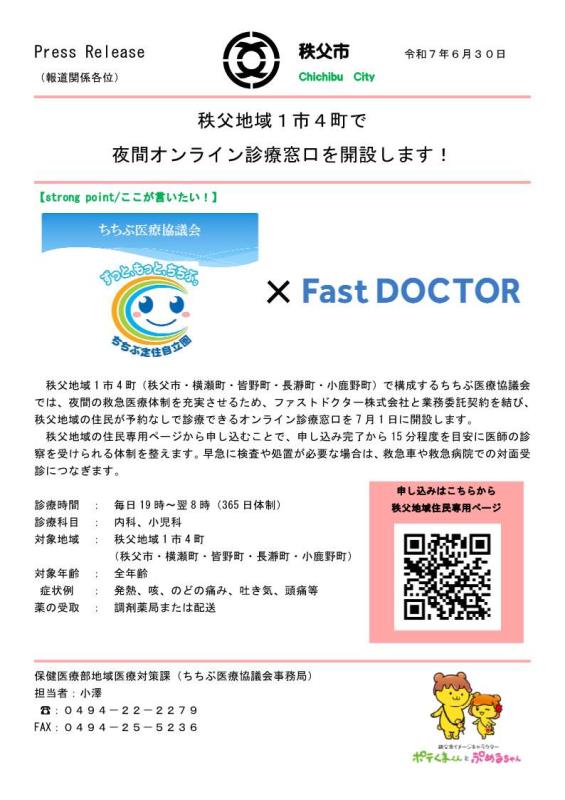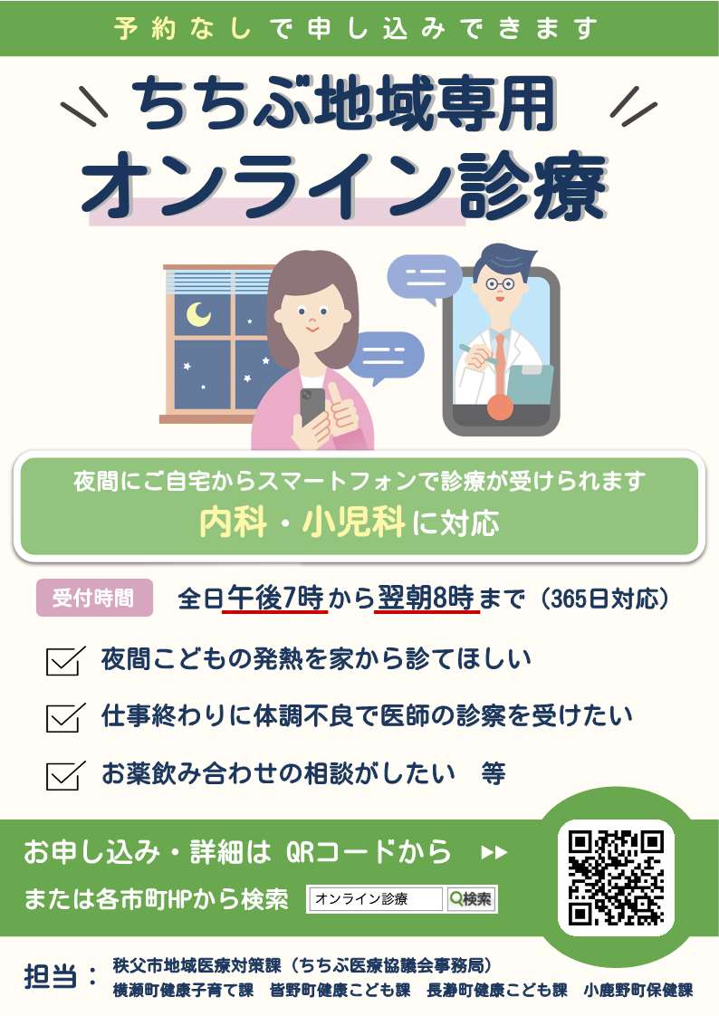 (3) 秩父地域1市4町で夜間オンライン診療窓口を開設します!