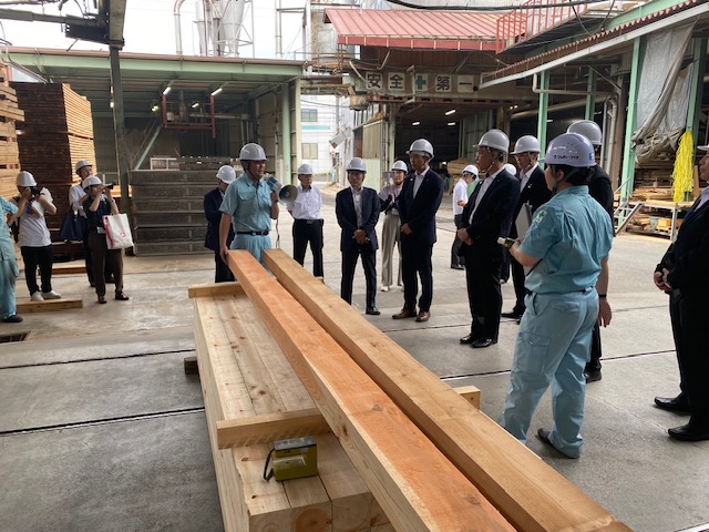 ウッディーコイケ様は創業114年を誇る老舗で、県内最大規模の製材工場を有する木材のプロ集団です。植林から伐採、製材、加工に至るまで幅広い工程を手掛け、林業技術の継承と発展に尽力されています。第75回全国植樹祭では、お野立所の建築にあたり構造材のプレカット加工をご担当いただきました。