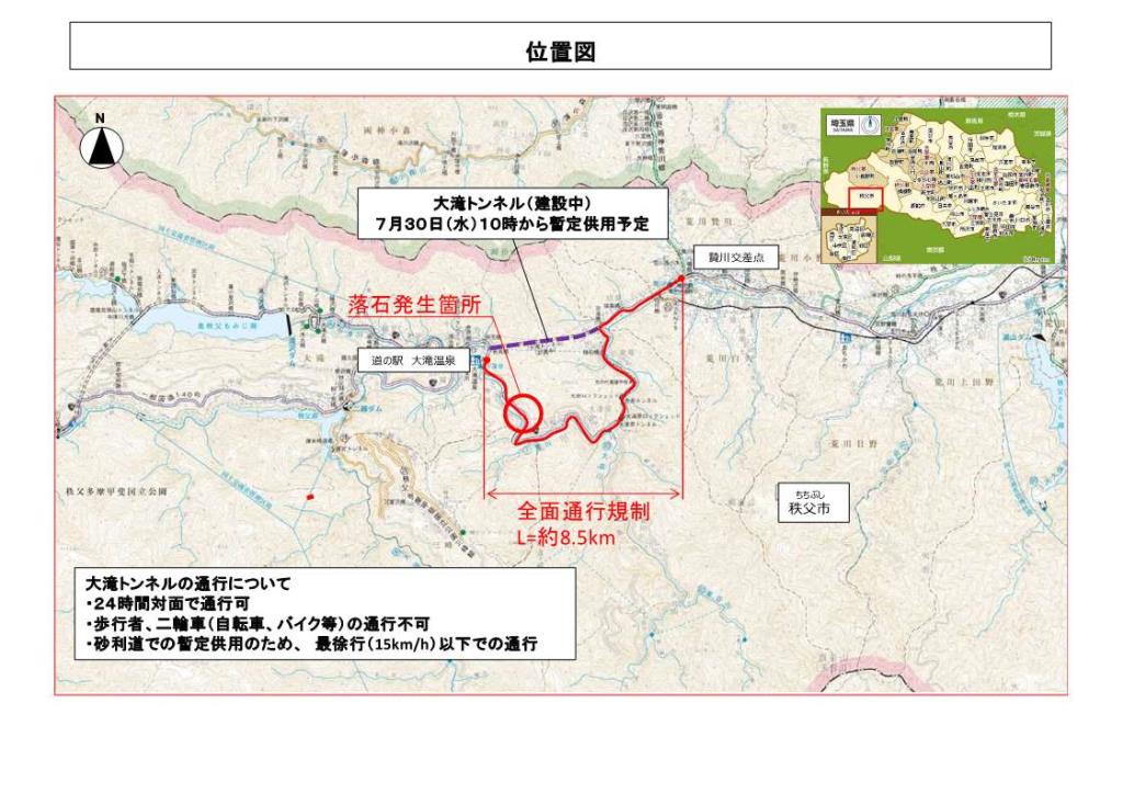 【埼玉県】一般国道140号の落石による交通規制について(第2報)