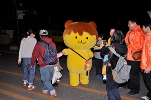 夜なのに、明るくてにぎやかだよねー。ボクが住んでいる羊山公園は、夜は暗いのにねー。