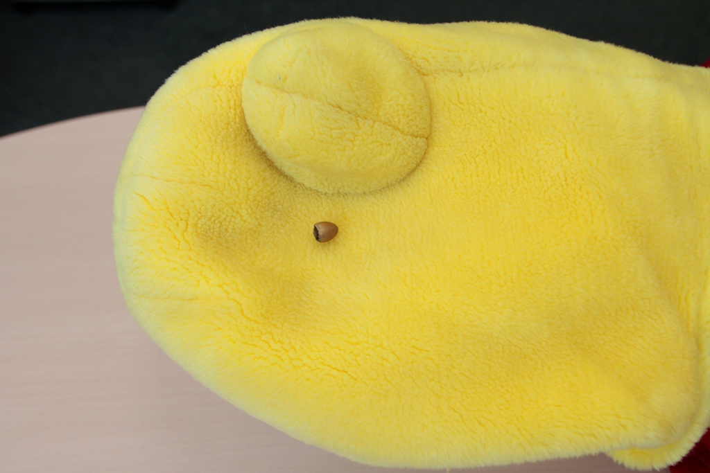 ほら、ちびっこがドングリをくれたよ。あんがとねー。