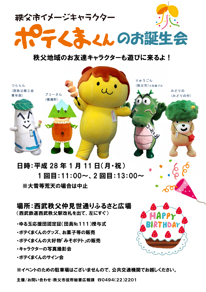 1月11日(月・祝)、場所は西武鉄道西武秩父駅からつながっている「西武秩父仲見世通り」の「ふるさと広場」でやるよー。(注:11時と13時の2回。内容は同じです。)